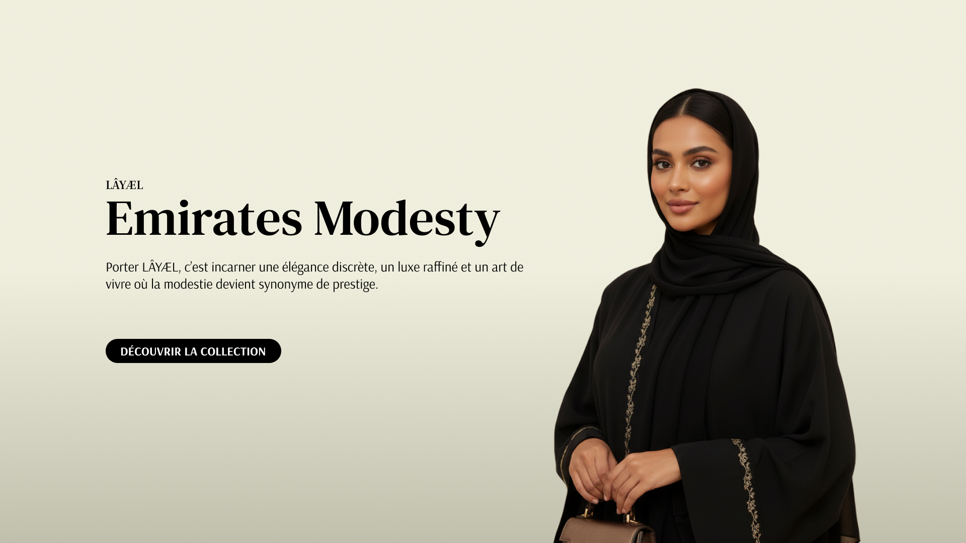 Chez LÂYÆL, nous mettons à l’honneur l’élégance intemporelle et le raffinement unique de la fashion modesty des Émirats.